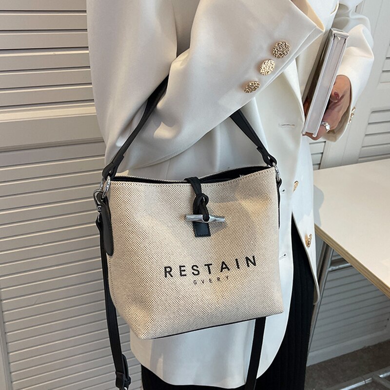 Women's New Popular Canvas Shoulder Bags Fashion High Quality Satchel Versatile Handbag Simple Casual Retro Bucket Crossbody Bag