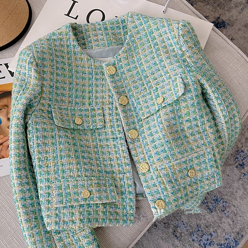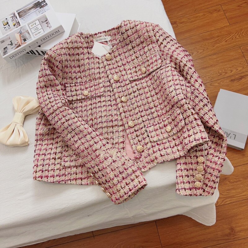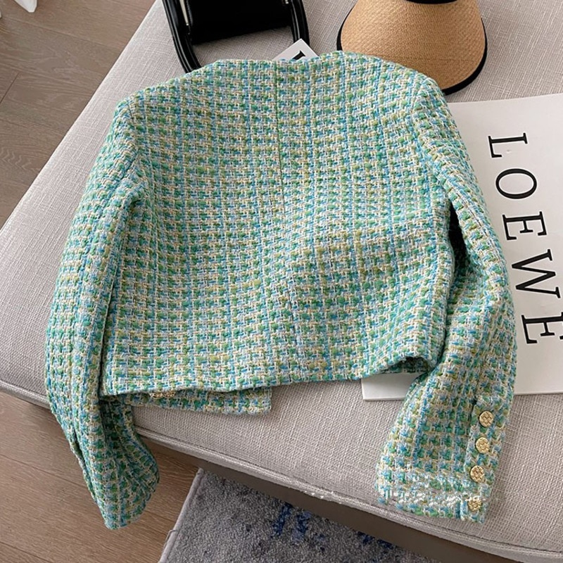 Heavy Industry Light Luxury High Sense Top Women's Jacket 2023 Spring New Plaid Tweed Temperament Short Small Fragrant Coat