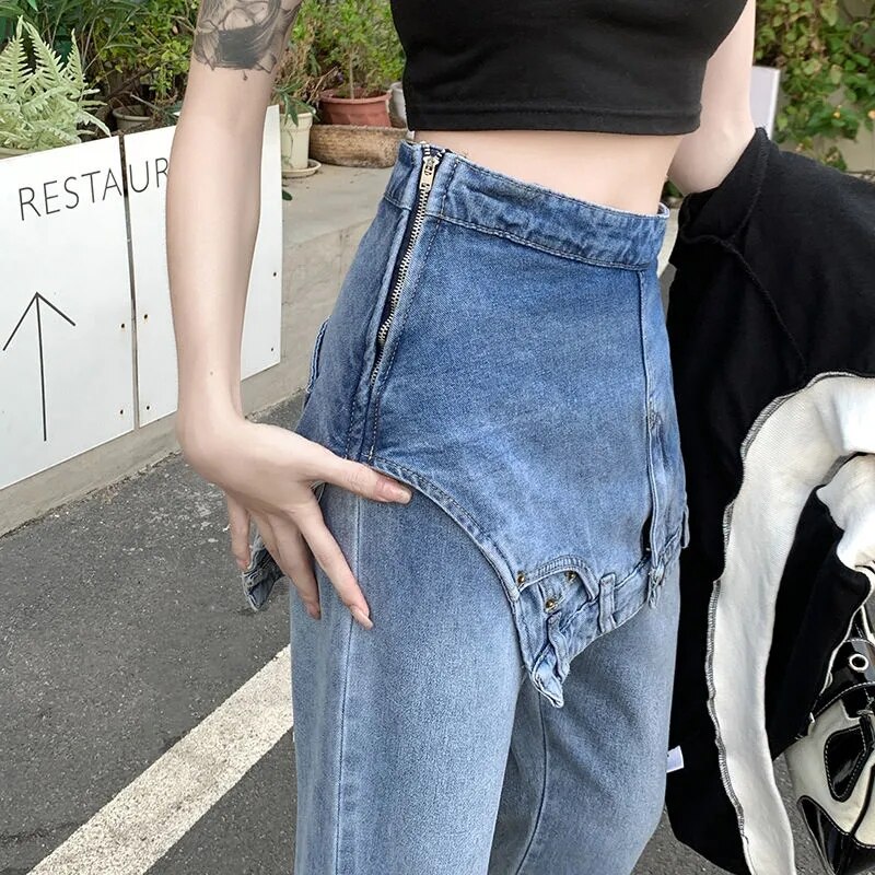 Faux Two Piece Flared Jeans Women's Y2k Winter 2023 Design Niche High Waist Slim Wide Leg Pants Trendydickies Pants청바지джинсы