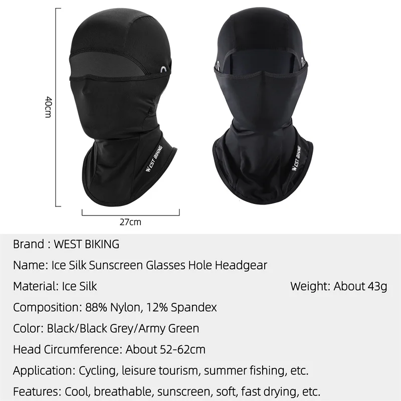 WEST BIKING Summer Balaclava Cycling Scarf Anti-UV Motorcycle Helmet Liner Outdoor Sport Bike Cap Men Women Ice Silk Bicycle Hat